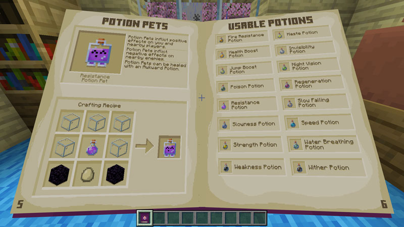 Have you ever wanted to make more potions or potions to make you levitate from the ground? What about making a potion and turning it into a cute little pet? Now you can do all these things and more! You can even craft potions to pour onto the end of your sword to help you fight off those pesky mobs. The possibilities are endless in this fun new potions expansion.